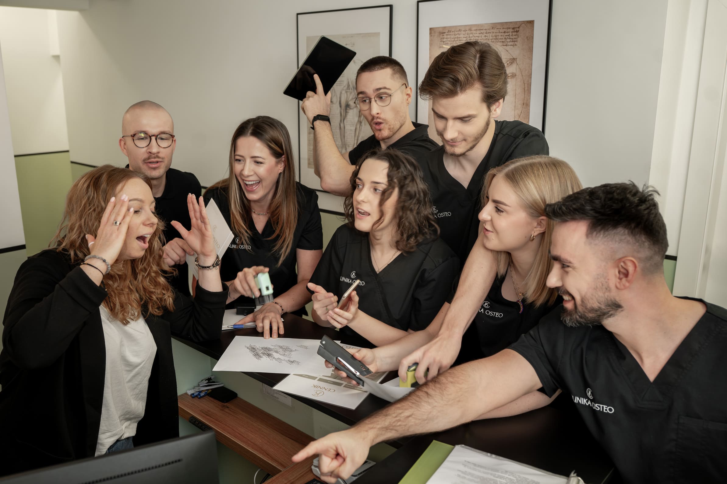 W pracy terapeutycznej łączymy osteopatię, fizjoterapię oraz nowoczesne metody diagnostyczne i manualne. Dzięki współpracy zespołowej możemy dobierać najskuteczniejsze formy terapii, a w razie potrzeby konsultować przypadki między specjalistami, zapewniając pacjentom spójną i kompleksową opiekę.